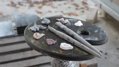 Робота із каменем в майстерні “Меморіальна архітектура” не припиняється, незважаючи на осінь за вікном. Частина замовлень уже виконана, або на завешальній стадії, але є проекти, виготовлення яких буде тривати ще не один тиждень. Процес перетворення заготовок із каменю на вивіску, ікону, пам’ятник, меморіальний комплекс особливо дивує тоді, якщо кінцевий результат перевершує сподівання замовників. Майстерня “Меморіальна