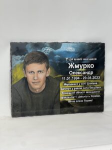 Меморіальна дошка з базальтового граніту підходить для встановлення на будівлях, пам’ятних місцях чи меморіалах. Вона не лише зберігає пам’ять про важливі події або людей, але й має естетичний вигляд, поєднуючи міцність природного каменю та художню роботу ручного розпису.