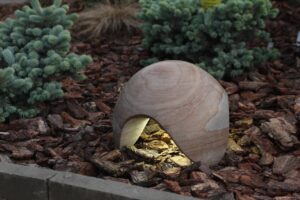 Вулична декоративна ліхтарна конструкція з червоного піщаника — це поєднання природної естетики та довговічності. Камінь вирізняється теплою фактурою і насиченим відтінком, що гармонійно вписується в будь-який ландшафт. Ліхтар стійкий до погодних умов, не втрачає кольору з часом і додає затишку та благородства прибудинковій території, саду чи алеї.
